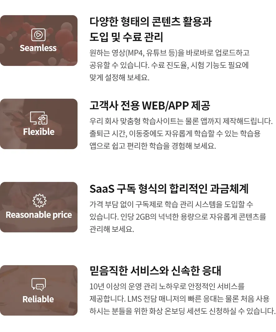 독립된 도메인으로 접속할 수 있는 PC기반의 웹 학습사이트를 구축할 수 있습니다.